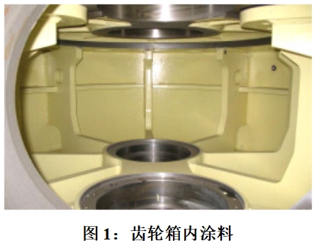 涂料主要用于齒輪箱外部和內(nèi)部的保護。齒輪箱外部涂料的作用是抵御惡劣環(huán)境對齒輪箱造成的腐蝕、鹽蝕等危害,內(nèi)涂料用于齒輪箱儲存和運輸過程中防腐蝕,并且內(nèi)涂料能夠束縛加工過程中留在齒輪箱中的鐵屑和沙粒。而內(nèi)涂料的選擇和使用還應(yīng)該注意什么呢?內(nèi)涂料作為齒輪箱的內(nèi)涂層保護(見圖1),不可避免的與齒輪油接觸,所以內(nèi)涂料和齒輪油的兼容性就顯得非常重要。