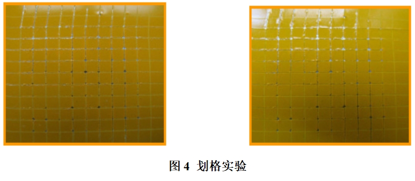 圖4為劃格實驗的圖片。在膠帶粘貼前后,如果測試板無變化,說明潤滑油沒有對涂料產(chǎn)生不良影響。